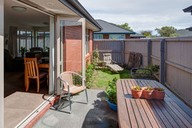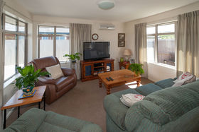 It comprises two bedrooms (semi ensuite off main), an open plan kitchen-dining-living area with doors to a private sheltered courtyard, an internal access garage with auto door. The decor is in neutral tones throughout, double glazing and a heat pump provide year round comfort.