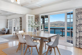 The open plan living provides fantastic indoor/outdoor flow with double doors that open to a large deck that wraps around the front of the home, overlooking the harbour.