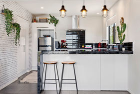 The kitchen is a large spacious work area with views from two angles, comprising of new appliances and features.