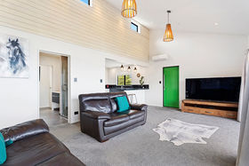 The lounge/dining space is open and features 4.4 monopitch ceilings that make the space feel incredibly large, yet cosy with the fireplace and heat pump to keep you warm.